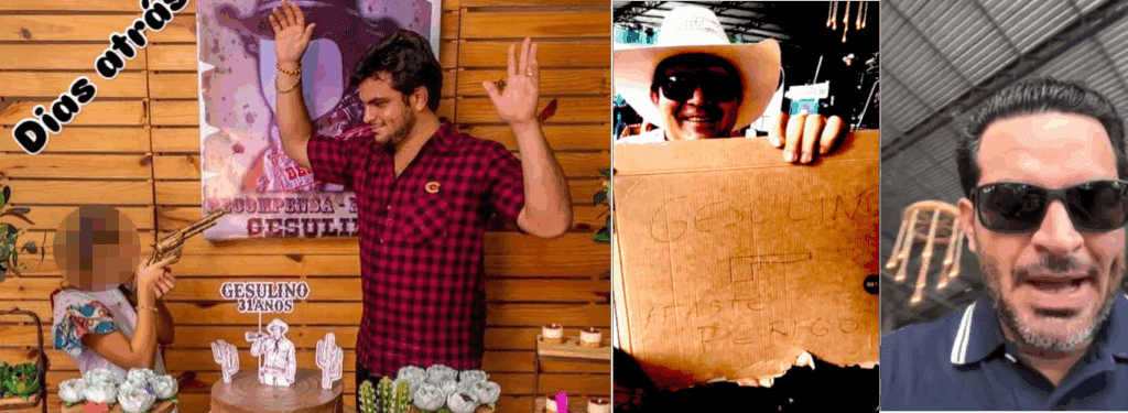 Em suas redes, Gesulino se vangloria da alcunha de chefe da pistolagem e faz questão de exibir armas e simulacros em seus vídeos. Em seu aniversário, anos atrás, chegou a fazer uma festa com o tema faroeste, colocando um cartaz seu com a palavra “recompensa-se” e com sua filha apontando uma arma de brinquedo para ele. Suas filhas são constantemente utilizadas em seus vídeos para passar a imagem de “pai de família”, quando na verdade são exploradas em competições de equitação em diversos eventos de Rondônia. Através das páginas do instagram @gesulinocastro_faz.4marcos e @marina_yamashita é possível acompanhar a exaustiva rotina de trabalho de suas filhas, todas menores de idade.