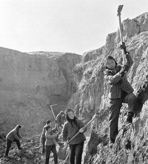Mais uma vez os camponeses se lançaram ao trabalho. Em primeiro lugar, salvaram a colheita. Através de trabalho árduo, obtiveram nesse ano aproximadamente duzentas toneladas de cereais. Os camponeses britaram pedras na montanha e fabricaram cal. Só a madeira e as telhas para as casas foram compradas fora. Durante esse trabalho, os camponeses de Tachai recusaram os créditos oferecidos pelo Estado por quatro vezes seguidas.