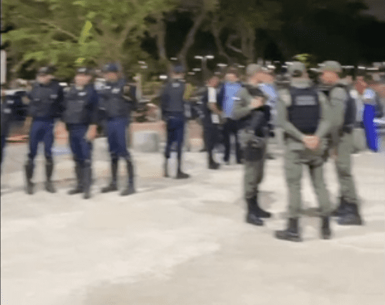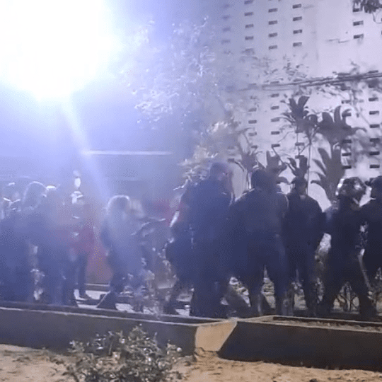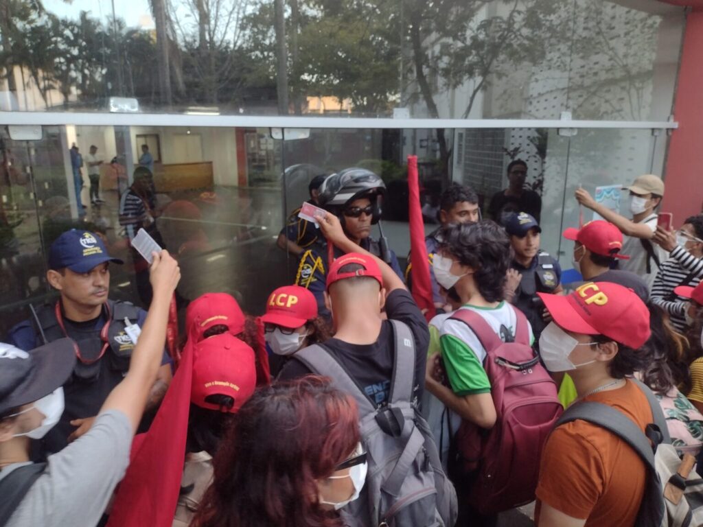 A PM e os seguranças ocuparam a entrada do centro, aguardando para realizar a prisão dos estudantes, em uma ação que remonta os tempos do regime militar fascista, onde a perseguição contra o movimento estudantil combativo e revolucionário tinha como prática as prisões políticas.