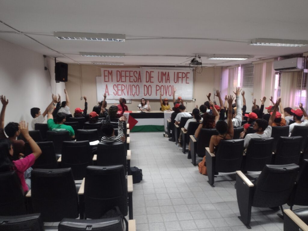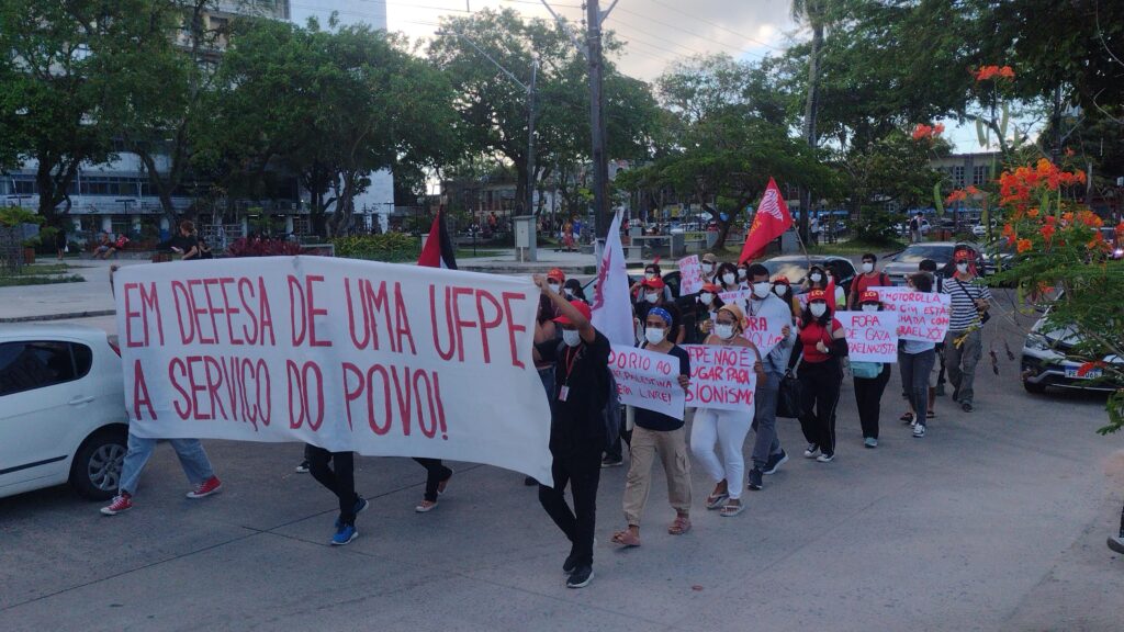 No dia 16 de Outubro foi realizado um Ato Público com o tema “Em defesa da UFPE a serviço do povo: Contra os ataques a autonomia universitária, pelo fim da colaboração com o genocídio do Povo Palestino!”. O evento foi convocado pelo Coletivo Mangue Vermelho, pela UJC (PCBR) e JS-PDT e contou com a presença do PCO e Faísca.