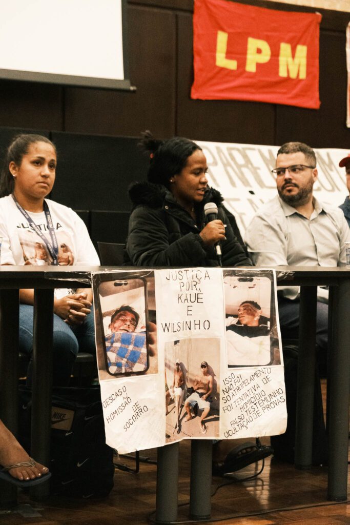 Participaram ainda, com intervenções marcantes sobre a luta de suas famílias, parentes de jovens vítimas da violência reacionária do Estado, como foram as familiares do jovem Kauê Araújo, injustamente encarcerado e agredido pela PM na Zona Norte de São Paulo; e o Dr. Júlio, pai do jovem Marco Aurélio, estudante de medicina assassinado brutalmente pela PM no ano passado na Zona Sul de São Paulo.