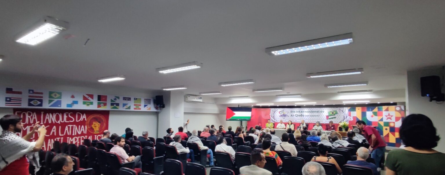 Um ato político-cultural em comemoração ao Dia Internacional de Al-Quds reuniu organizações populares, representantes diplomáticos, partidos políticos e veículos da imprensa democrática em Brasília, na noite da sexta-feira, 13 de março. A atividade expressou solidariedade à luta do povo palestino e denunciou a ocupação israelense da Palestina e a política imperialista do Estados Unidos no Oriente Médio.